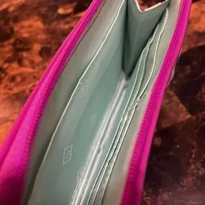 Pink, floral wallet. Mint color inside. Gently used.