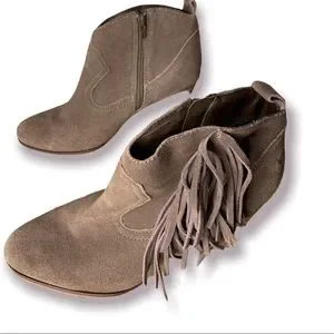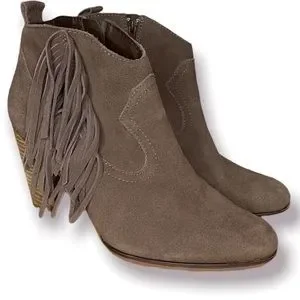 SoldSteve Madden Taupe Suede Ohio Fringe Western Ankle Booties Bohemian Sz 10