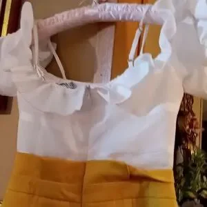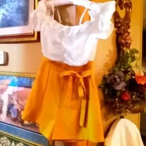 This is a very classy romper .I am showing in the photos a very small stain not noticeable..but see all photos and my video..thank you for looking..bundle to save...