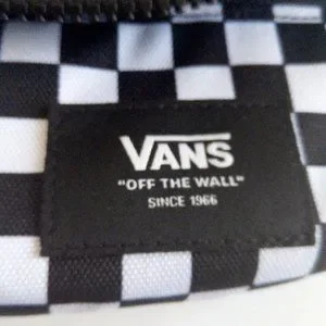 This Vans Ward black/white crossbody is adorned with a checkerboard design. It features a large main zipper compartment, an exterior zipper pocket, and a roomy interior with zip pocket to store your belongings like masks, wallets, cash, ID, cards, keys, mints, gum, snacks, lotion, lip balm, sanitizer, etc. There's a Vans label on the front and an adjustable strap which can be worn around the waist or over the shoulder as a crossbody bag. It is great for travel and makes finding your travel items like passports and boarding passes easy to locate and access. This item is authentic.
