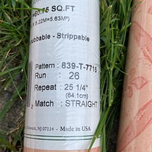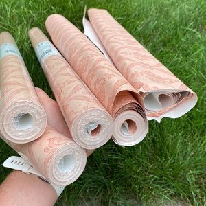3 unopened full double rolls. 1 opened but not used and another 1/2 roll. Pattern 839-T-7715. Blush Fleur De Lis. Gorgeous. Designer ordered far too much!!!