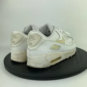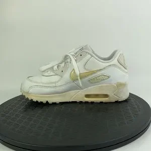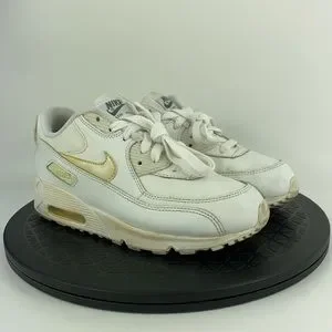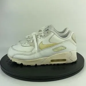 Nike Air Max 90 White Leather Athletic Running Shoes 724822-100 Youth Size 3Y