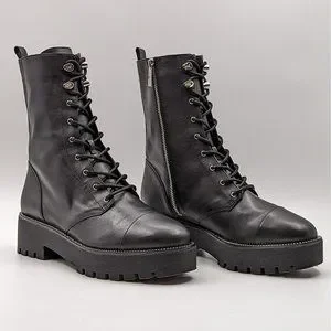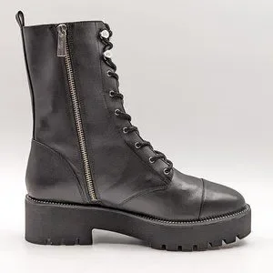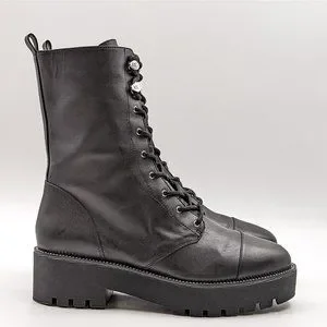 Michael Kors Women Bryce Platform Black Leather Lace Combat Boots US 9.5 M NEW