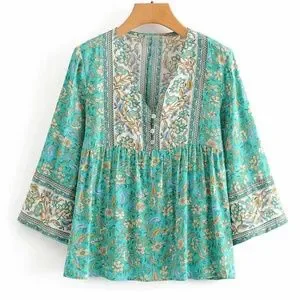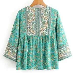 Boho Gypsy Floral Print Neck Tie Blouse