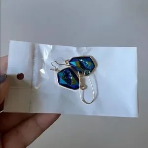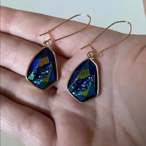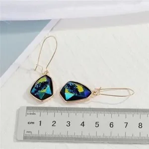 Iridescent Blue and Green Imitation Stone Drop Earrings