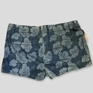 NWT. Beautiful super soft chambray shorts will only get better with time and wear. Lovely hibiscus pattern. Trouser back pockets. Finished inside seams.