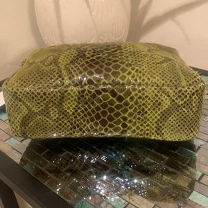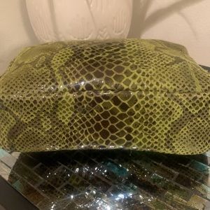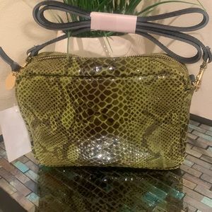 Snake embossing adds attitude to an attention-grabbing green crossbody created from Italian leather.