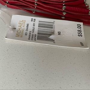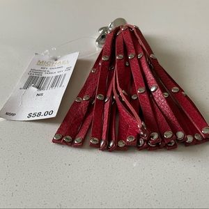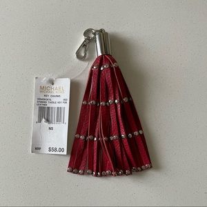 NWT Michael Kors Studded Tassel Key Chain Fob Bag Charm Silver/Red Leather