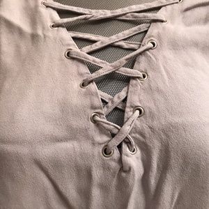 Grey Crop Tank w/Laced up front. Blouse. Misses L. Forever 21. NWT. Sexy.