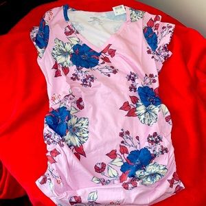 Maternity Short Sleeve Shirt with scrunched sides, very comfortable cool material for Maternity Comfort! 55% cotton, 41% Modal, 4% Spandex.