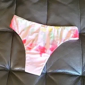 BNWT- cute and eco friendly surf brand Volcom. Pink multi print skimpy coverage bikini bottom. Boho / surfer / beach girl vibes.