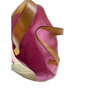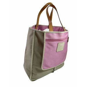 Coach Womens Tote Bag White Pink Color Block Beach Zip Pockets Dual Handle Bag
