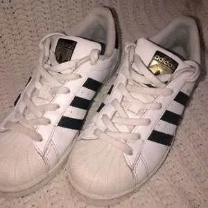 Adidas All Stars White Sneakers W7/M5.5. Been worn several times but still in good condition!