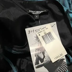NWT $293 Betsey Johnson | Y2K | Unlined Teal Striped Corset Ruffle Dress | 4