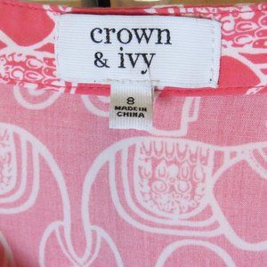 **SOLD** Crown & Ivy Dress / Tunic - Size 8 - Pink - Elephant - Cinch Waist