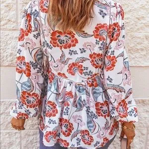 Add a feminine touch to your look with this floral babydoll top. The babydoll style is paired with balloon sleeves for an effortless look.