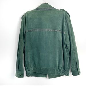 Vintage 80s green suede jacket with leather trim.