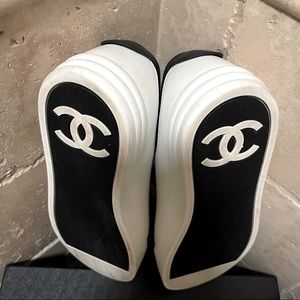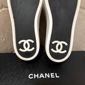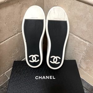 Guaranteed authentic, worn only twice. Mens Chanel black and white leather lace up sneakers with rubber sole. Embroidered logo at side of shoe. From the pre fall 2017 mens runway. Size 42. Faint wear at soles, otherwise outstanding condition. GTD/RF