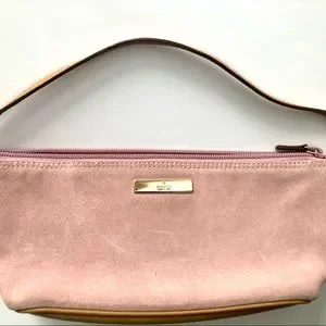 EUC. Super cute authentic Gucci handbag. Pink suede w/leather detailing and gold accents. Gucci printed lining inside is flawless.
