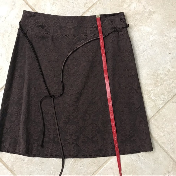 Feminine French Dressing Brocade Tapestry Skirt Set / Brown but also looks like a Maroon Color in different Lightings / Skirt has Lariat “belt”