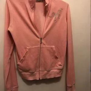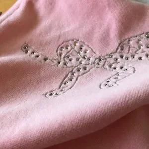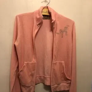 Charming Juicy Couture light pink cotton (80%) jacket with sequins embroidery. Full zip up closure with two pockets. Length - 20.5”.