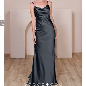 Size 4- NWOT condition. Wore once for few hours. Dry cleaned and hanging up. Not altered in any way. Adjustable straps. No signs of wear. Beautiful dress. Black SKYE satin dress REVELRY. Bought ready to ship for $260.