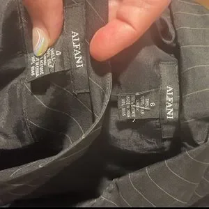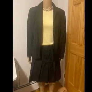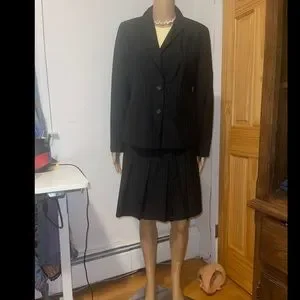 Alfani silk pinstripe skirt suit in black blazer size 6 skirt size 4 good condition