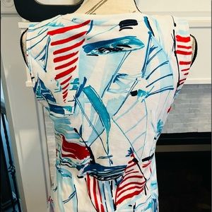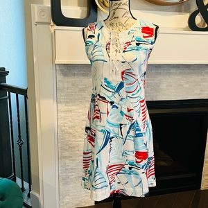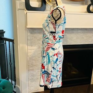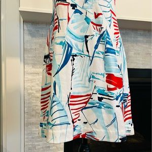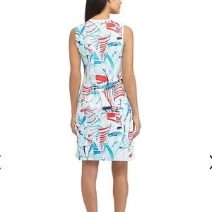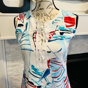 A sailboat-inspired print and a lace-up placket give this slim-fitting Chaps dress a summer-ready look. In white, multi. Perfect fashion dress for the 4th of July