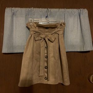 Cute khaki miniskirt new in bag. Fabric is so soft and comfortable. Refer to product description and size information in photos before purchase. Color is a bit darker than in the stock photo. It is more the color shown in the actual photos of the garment. Size XL