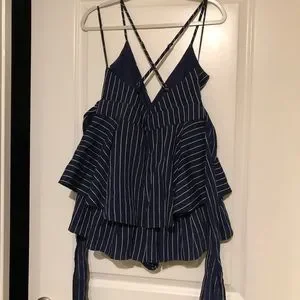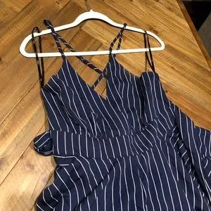 Ruffle and Flow Navy Blue Striped Backless Ruffle Romper