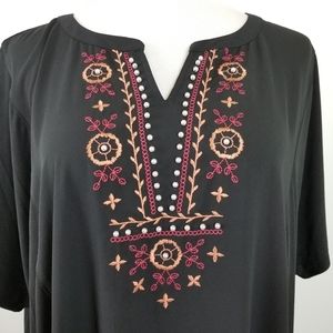 New C Est 1946 shirt, black with embroidered flowers and sewn on pearl beads, 95% polyester, 5% spandex