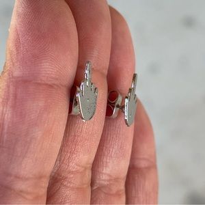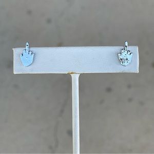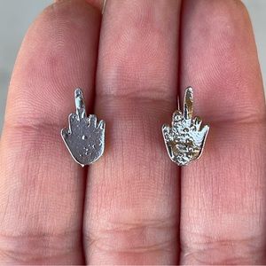 Adult middle finger hammered silvertone stud earrings for pierced ears. Great for a gag gift or just for some off color funπ Zinc metal alloy.