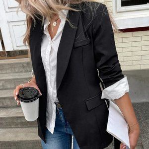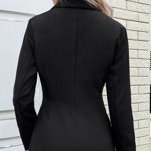 Black D-ring Side Wrap Shawl Collar Blazer contemporary Office Chic