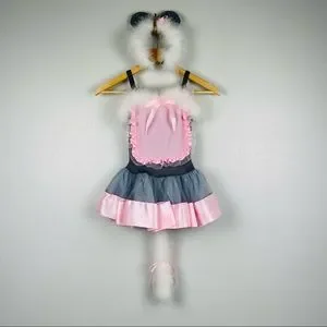 Handmade Set of Mouse Costume for Little Girl Pink-Grey with Ears headband π