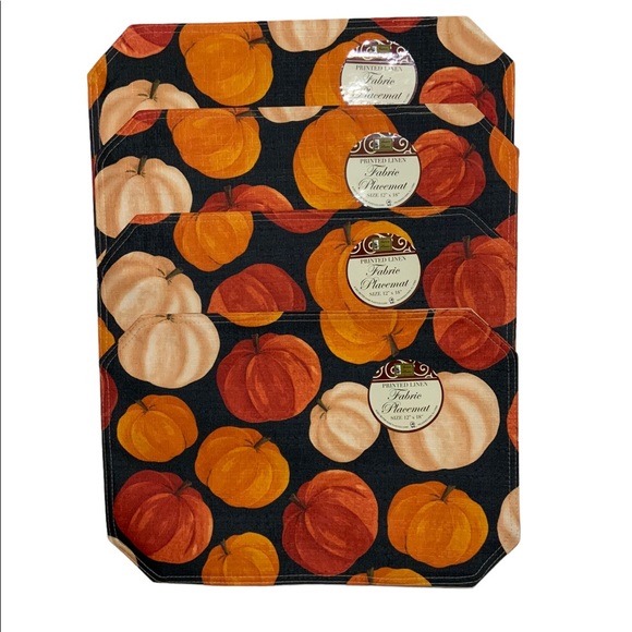 Pumpkin Linen Print Fabric Placemats for the Fall Autumn Halloween Seasons. 12 in X 18 in NEW