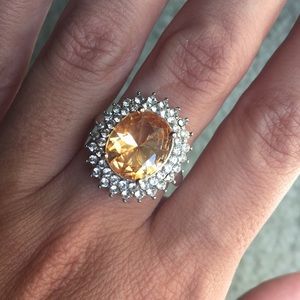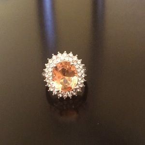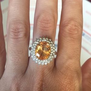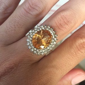 ❤️Citrine Gem Ring with Halo white Sapphires around Size 7