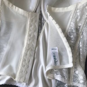 Carnival Deep Plunge Low Back White Creamy Lace Boned Corset