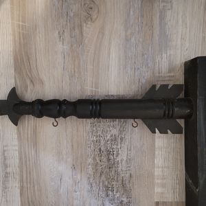You are purchasing two a distressed USA Flag Arrow sign is a nod to patriotism. The red, white and blue sign is perfect for anytime of year or addition to your home. You are also purchasing the wood hanger. At the tip of the Arrow is bent some. You are also getting this cute witch great for Harvest or Halloween