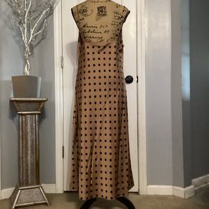 Measurements: Approximately 49” Long, Bust measurements Lying Flat from armpit to armpit 19”. Color: Tan with black polka dots Size: Medium New with tag
