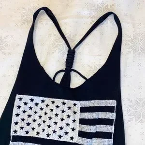 A size small, vintage, black & white American flag tank top with fringe.
