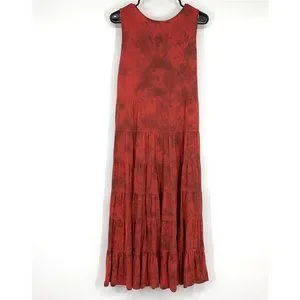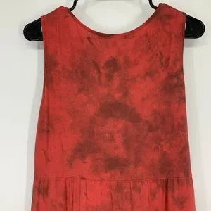 Reba Dress Womens Medium Red Tie Dye V Neck Sleeveless Midi Maxi Tiered Ruffle Boho. Great pre-owned condition. Pullover, stretch