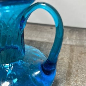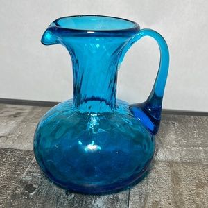 Small Blue Hand Blown Glass Pitcher Unique Design