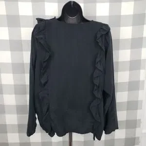 Zara Black Double Ruffle Blouse