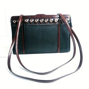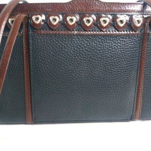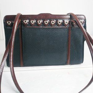 VTG! BRIGHTON Black/Brown Pebble Leather Shoulder Bag 10" Wide x 6.75" Tall