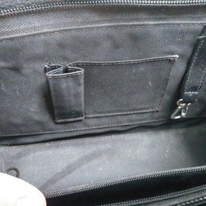 Outside Snap Pocket w credit card slots & ID window / 2 outside/inner compartments/1 zippered inside pocket/1 small pouch pocket /1 pen pouch and 1 key snap