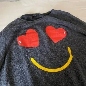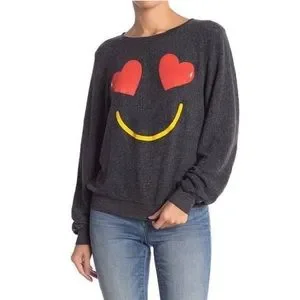 Wildfox sweatshirt with smiley heart eye emoji on the front. Size S, but runs on the bigger side so definitely could fit size medium (my typical size). Super comfortable and fuzzy. Relaxed fit. In great condition.