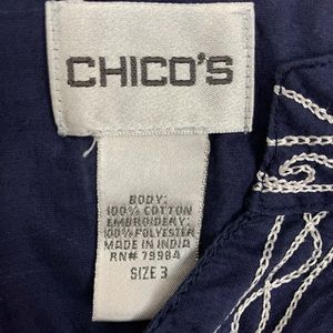 Chicos Navy Embroidered Long Sleeve Button down shirt, Size XL 16 (chicos sz 3)
