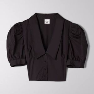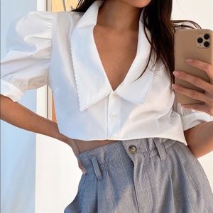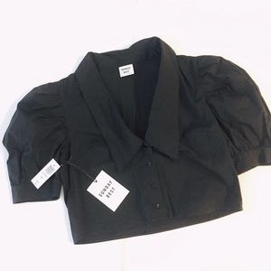 Victorian puff-sleeve cropped blouse with feminine collar. How quaint.