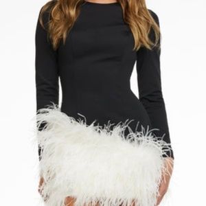 Ashley Lauren Fitted Cocktail Black Dress with White Feathers!