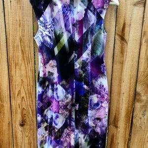 Adrianna Papell Dress Floral Knee Length Purple
